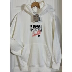 NEW Puma Downtown Oversized Graphic Kadin Beyaz White Flower Hoodie XS
