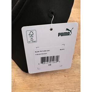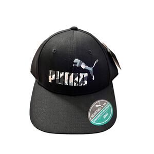This Puma Evercat snapback hat features a sleek black camo design with a black embroidered Puma cat logo on the front. Made with durable materials, it includes an adjustable snapback closure for a custom fit, breathable eyelets for comfort, and a structured flat brim for a clean look. Perfect for casual wear, workouts, or streetwear style.