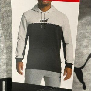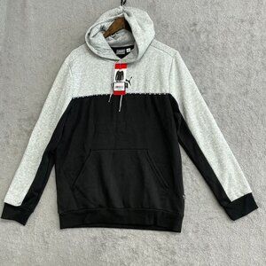NEW Puma Men's M Gray & Black Colorblock Hoodie Cotton & Polyester