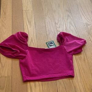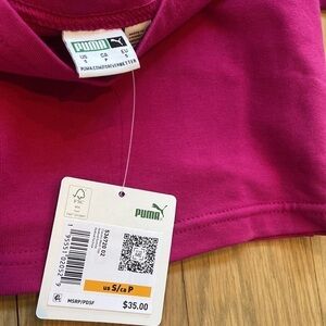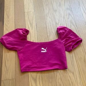 New with tag Puma pink crop top, size S. Bright pink with white Puma logo, very stretchy fabric and puffed sleeves with elastic around shoulders and arms. Bought this for myself and the seller took forever to ship so I didn't need it anymore. Now I want to pass the deal along to someone else!