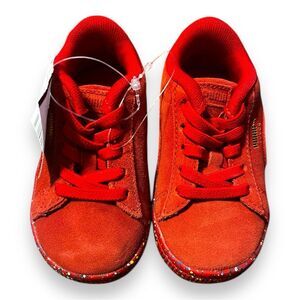 NEW Puma Suede Triplex Mono Red Paint Splatter Lace Up Sneaker Shoes Speckle 5C