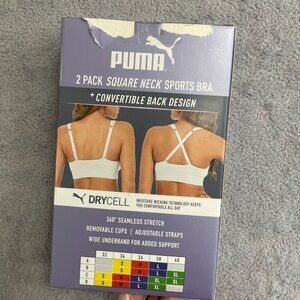 NEW Puma Women's L 2 Pack Seamless Sports Bra Square Neck Convertible Back Gray