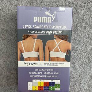 NEW Puma Women's M 2 Pack Seamless Sports Bra Square Neck White/ Purple