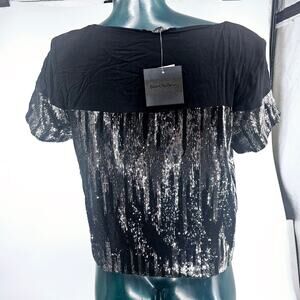 NEW Pure Sugar Black Sequin Short Sleeve T-shirt Blouse Top Women's Size S 3332