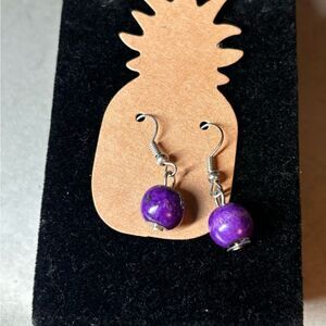 NEW Purple Beaded Fish Hook Dangle Earrings NWOT