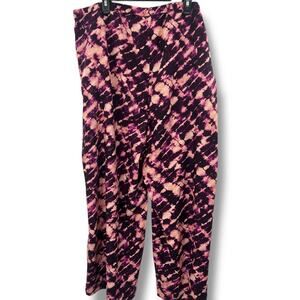 NEW Purple Printed Wide Leg Pants Plus size 2X Cotton Linen Summer Lounge Beach