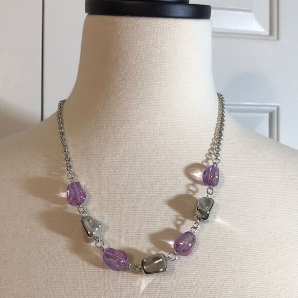 𝅺NEW Purple And Silver Bead Necklace
