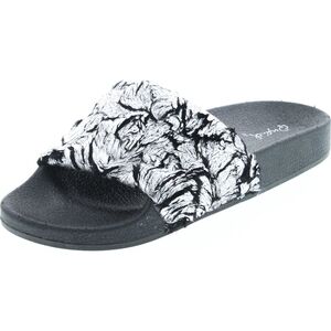 NEW! QUPID FAUX FUR METALLIC FOOTBED SLIDES SANDALS SLIPPERS LOUNGE BLACK SIZE 7