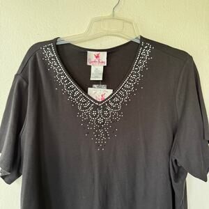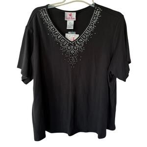 NEW! Quacker Factory Black V Neck Bling short sleeve black t-shirt size 3X