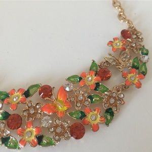 New orange floral necklace. Orange hues enamel, lots of rhinestones on gold tone metal for lots of sparkle. 19.25" long with lobster closure and 3" extender. Absolutely beautiful and great quality heavier piece. DON’T LET THE PRICE FOOL YA!