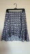 Carven silk skirt with postage stamp print throughout asymmetrical hem and zip closure at back.