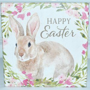 NEW Quill to Paper by Sixtrees Happy Easter Wooden Bunny Sign