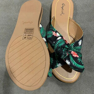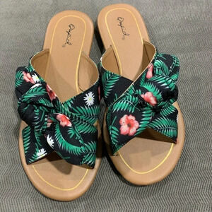 NEW Qupid Green and Black Floral slip on sandals Size 6