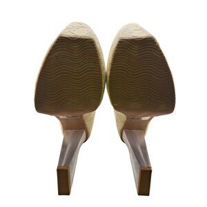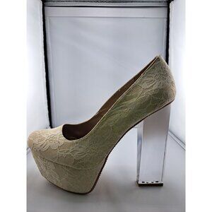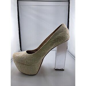 NEW Qupid Womens Embroidered Off White Platform Lace Lucite Chunky Heels 10