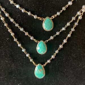 NEW RACHEL REINHARDT RUSSIAN AMAZONITE & LABRADORITE TRIPLE NECKLACE