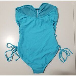 RACHEL ROY Women's Aqua Stretch Side Lace-Up Sweetheart Moderate Coverage One Piece Swimsuit