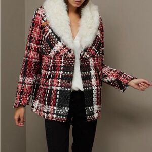 NEW RAG & BONE $1595 Antoine Weave Lamb Shearling-Trimmed Plaid Jacket