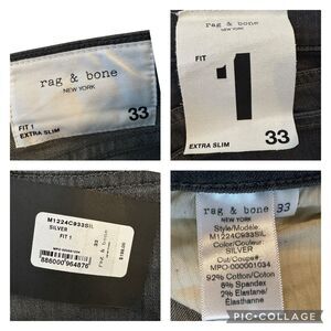 NEW RAG & BONE Men's Fit 1 Extra Slim Jeans Silver Gray Sz 33 (32x35) Button Fly
