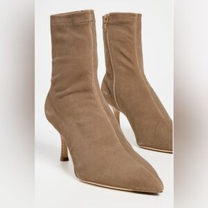NEW without box The Brea. A pointed toe boot with a stacked heel. Crafted in 100% kid suede, plus a side zip closure for easy utility. Stretch kid suede upper, backed with satin