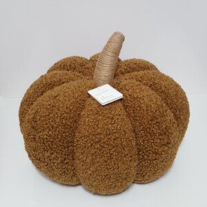 NEW RARE Large Pottery Barn Tobacco Cozy Pumpkin Pillow 9.5" diam, 14" h