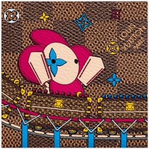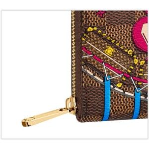 For Christmas 2020, Louis Vuitton's Vivienne mascot stars on an exclusive edition of the Zippy coin purse in Damier Ebene canvas. Brightly colored illustrations featuring House symbols show Vivienne enjoying herself at a funfair, riding on a roller coaster where the cars are Louis Vuitton trunks! This compact, zip-around purse has space for cards and notes as well as coins.