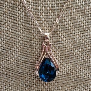 NEW RARE Ocean Blue Rose Gold Necklace & Earring Set Exquisite Unique Elegant