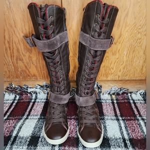 RARE NEW Vintage Converse All-Star calf knee high leather buckle sneaker shoes boot. These are super rare brown leather trim knee-high boots. Has cute buckle straps on the side. These are in good clean condition. Well taken care of.