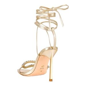 NEW RAYE Revik Stiletto Heel Sandals Crystal Straps Ankle Wrap Tie Metallic Gold