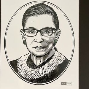 NEW RBG Ruth Bader Ginsburg HERO HEADS Wall Decor Black Matted Print 11" x 14”