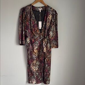 NEW REBECCA TAYLOR Snakeskin Print Silk Wrap Dress 12