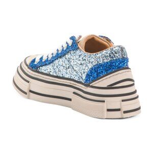 glitter finish, front zip detail, brand logo accent, grip sole, leather lining, size chart conversion may vary slightly by country