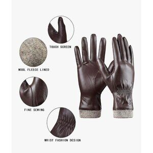 NEW REDESS Winter Leather Gloves Dark Brown Wool Fleece Lined Touchscreen 8 XL