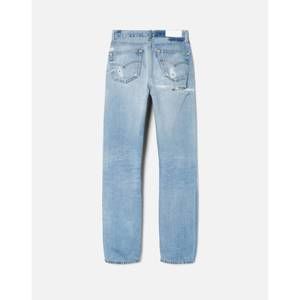 Straight cut with back slit / distressed at the back. 5-pocket style.