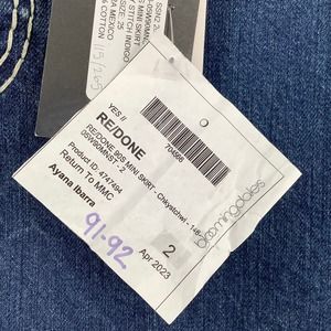 NEW! RE/DONE 90s Mini Skirt Chunky Stitch Indigo Size 25 Denim $265 msrp I6-3