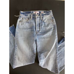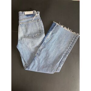 These RE/DONE Jeans are cropped with a 27.5" inseam, or perfect length for short girls! These do have a red X on the tag on the inside, however I cannot find anything wrong with them. These jeans are a light wash and have a darker inset on the bottom to create a flair. These are high rise with a button fly and ready to be enjoyed!