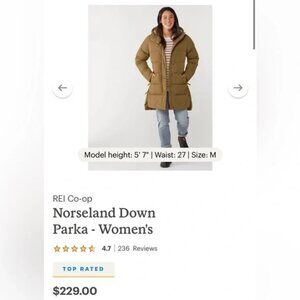 NEW REI Norseland Down Parka NWT XS Oak Brown Water Resistant Hooded Coat $229