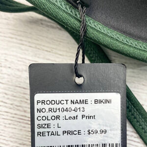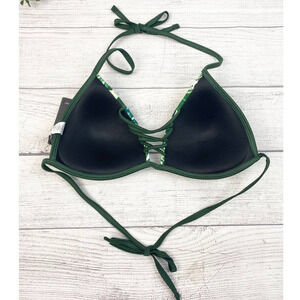NEW RELLECIGA designed in Paris Gold Shimmer Green Leaf Tropical Bikini Top L