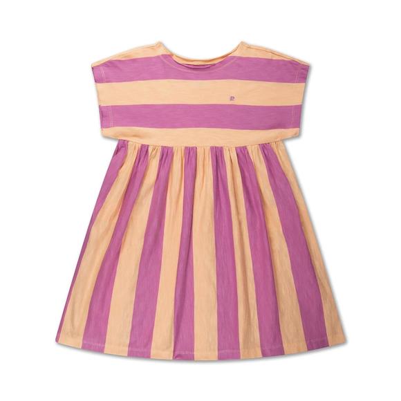 - Description: LOOK: A tee shirt dress in summer is the epitome of the relaxed, carefree lifestyle. New from Repose is such a dress, with alternating fun summer colors. The pull over style has a rounded neckline and cap sleeves. The horizontal stripes on top contrast with the vertical stripes of the skirt portion. This is a great go to piece with sandals or sneakers. It can even be worn as a bathing suit cover-up. Funky hat, sunglasses and a sassy attitude will bring the whole vibe together this season. FABRIC: Smooth cotton FIT: Classic STYLE/OCCASION: Casual GARMENT CARE: Machine wash inside out FABRIC CONTENT: 100% GOTS organic cotton COLOR: Pink stripe, Blue stripe