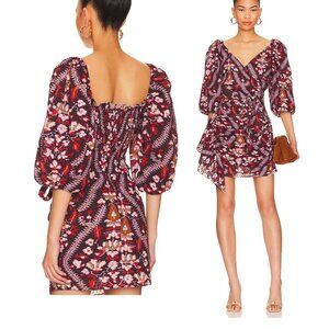 NEW RHODE DARYA WRAP AROUND MINI DRESS IN PLUMERIA CHOCOLATE PRINT SIZE M