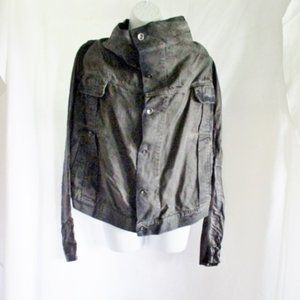 From the estate of a fashion buyer with INCREDIBLE LUXURY tastes, stunning BRAND NEW women / ladies genuine / authentic RICK OWENS DRKSHDW lambskin leather and cotton denim jacket / coat in BLACK. Intentionally distressed. Size small: measures approx 27.5" arms, 15.75" shoulders, 17.25" long, 38" chest. Perfect gift for high-class fashionista - compliment grabber - Psychotic Leopard says, BE SPOTTED!