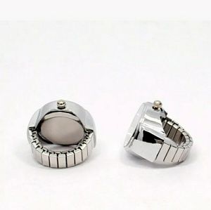 Quartz elastic band ring watch with blue face