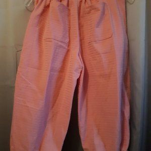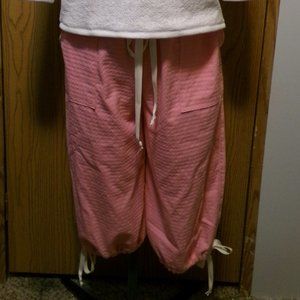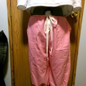 NEW RIP Stop Denim Capris sz 12 Pink patterned Casual pants Drawstring waist