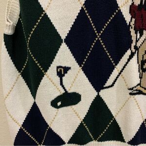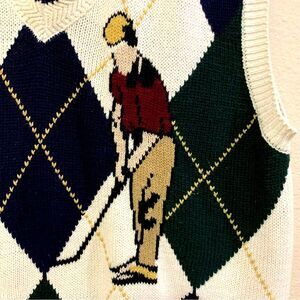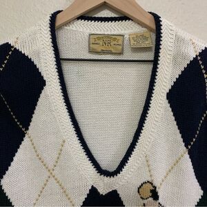 NEW RIVER CO Cotton Knit Vest Men’s XL Navy Blue Cream Argyle Golfer Graphic.