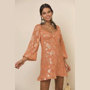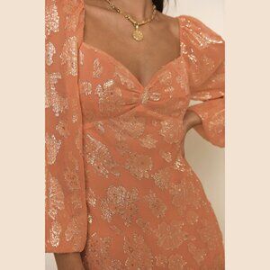 NEW RIXO - Size M, Women's Paris Silk Mini Dress - Lily Metallic Coral