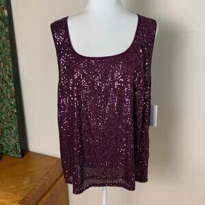 • Sleeveless sequin tank top with scoop neckline