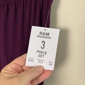 NEW R&M Richards Burgundy Wine Sequin Pant Suit 3pc Set Jacket Tank Pants Plus 18W