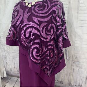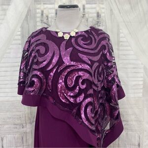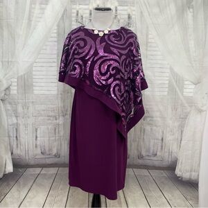 R&M Richards Size 12 Purple Sequined Lace Shift Dress Overlay Formal Party