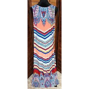 NEW ROAMANS STRIPED PAISLEY PRINT SLEEVELESS LONG LIGHT MAXI DRESS SIZE 14/16