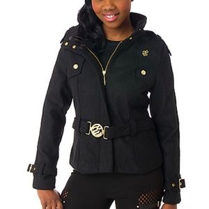 NEW ROCAWEAR black Y2K Zipper Snap Belted Logo WOOL Winter COAT Medium M