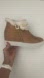 NEW! ROCK & CANDY Faux Fur & Suede Bootie Womens 8 gold accents wedge Tan Cream